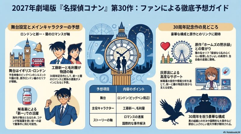 コナン映画2027予想|次回作は新一&蘭でロンドン確定?30周年のメインとあらすじを徹底解説
